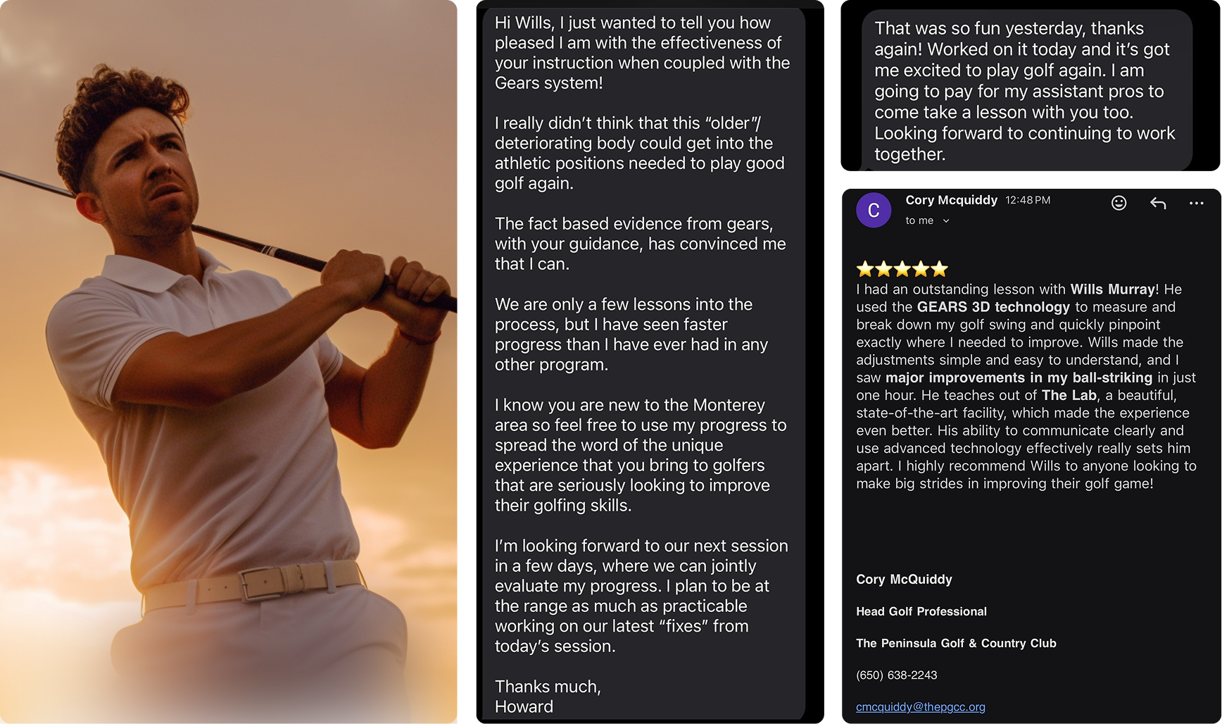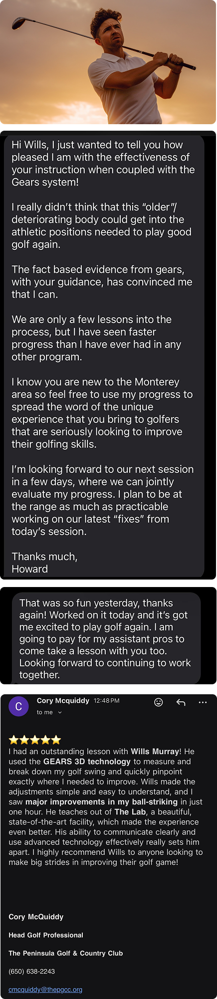 Wills combines deep coaching experience with the precision of GEARS data to give you something most golfers never get: a clear, honest picture of where you actually are — and a smart path to where you want to be.